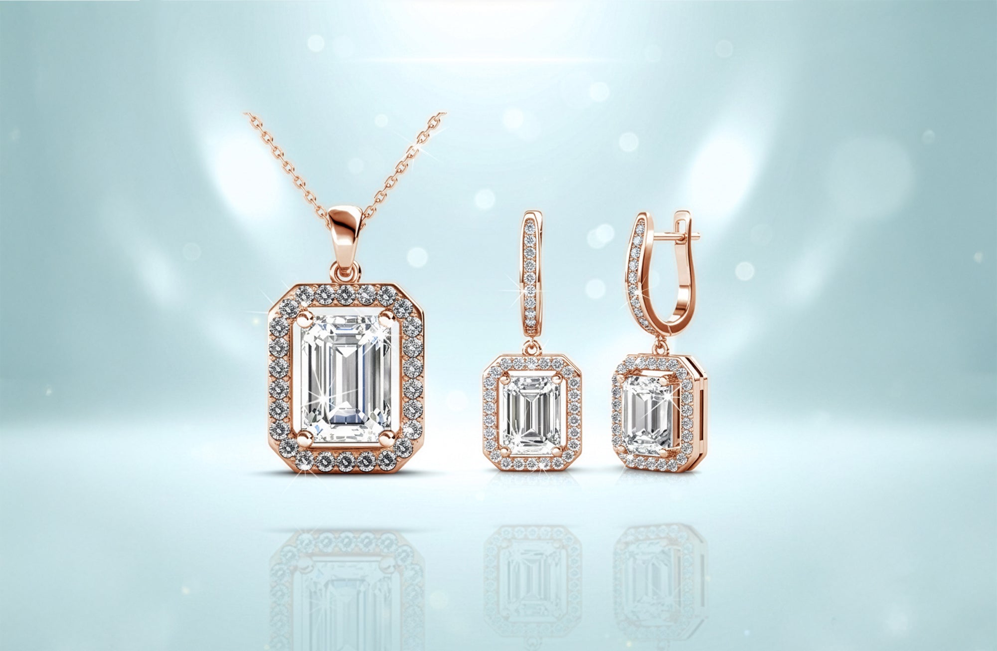 Кoлие с обици Rectangle Crystal Set с австрийски кристали -